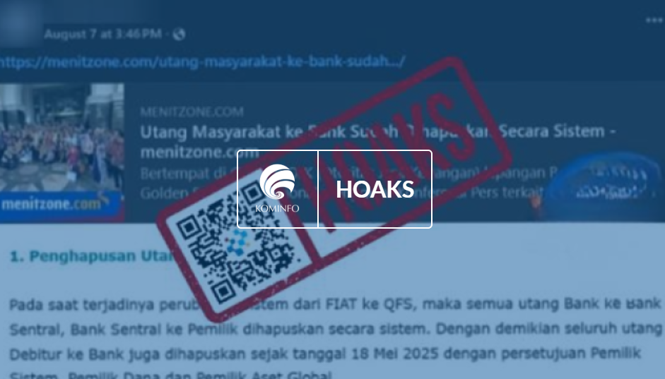 Beredar sebuah unggahan di Facebook yang membagikan tautan dengan artikel berisi informasi yang menyebutkan bahwa utang masyarakat di bank sudah dihapuskan oleh Otoritas Jasa Keuangan (OJK). Unggahan tersebut dibagikan pada 7 Agustus 2025.